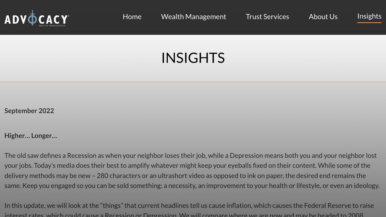 Advocacy Wealth Management provides periodic updates and insights into the financial markets.